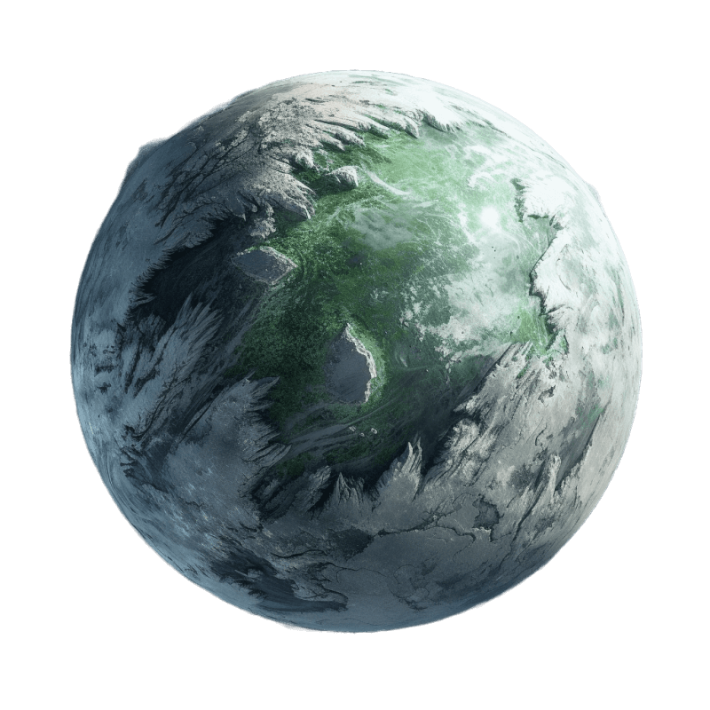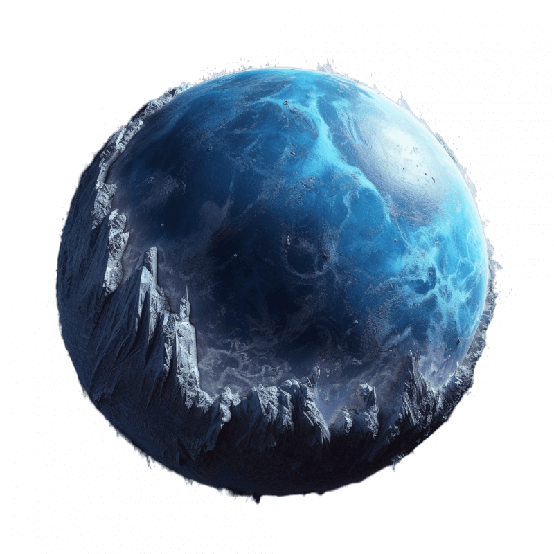 A celestial wonderland of captivating allure, adorned with an undulating expanse of glistening ice. Towering peaks and majestic glaciers carve intricate patterns on the frozen canvas. Inhabitants, resilient and connected to the ice, craft gravity-defying structures.